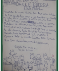 O projeto foi desenvolvido, na turma do 4o ano do ensino fundamental, cujo tema foi “Onde há guerra não há respeito”.